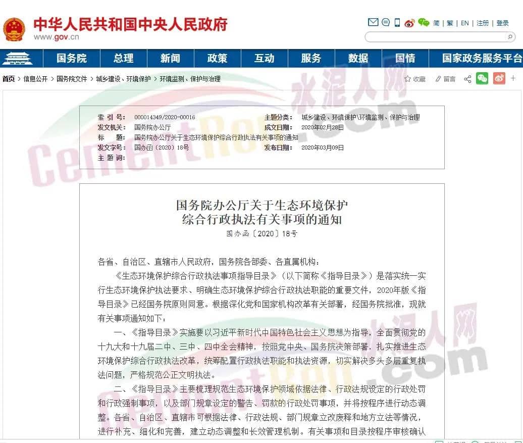 3月9日国务院办公厅发布《关于生态环境保护综合行政执法有关事项的通知》明确,要扎实推进生态环境保护综合行政执法改革,统筹配置行政执法职能和执法资源,切实解决多头多层重复执法问题,严格规范公正文明执法。