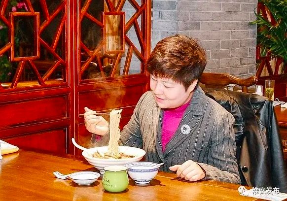 这天,在淮安市区交通路上的浦楼面馆,市委书记蔡丽新点了份淮安特色小吃——长鱼面,她边吃边夸,“真好吃!”