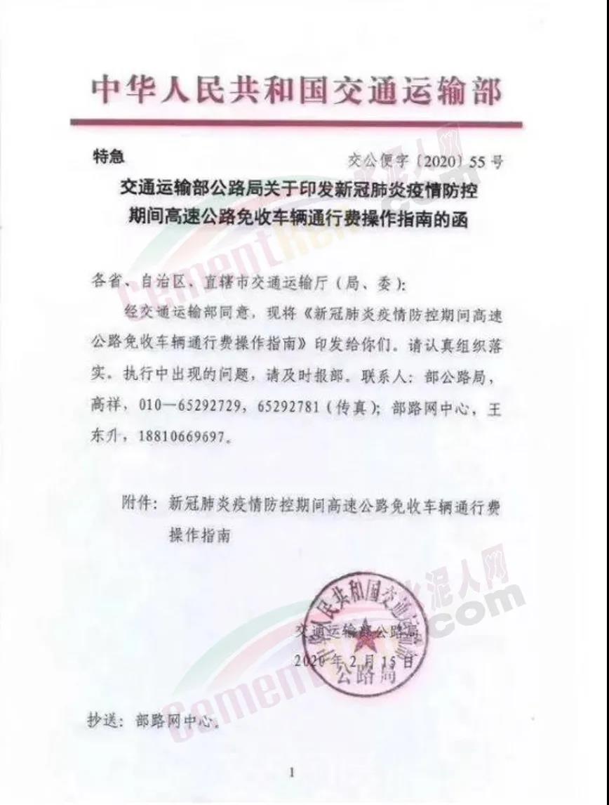 2月15日,交通运输部正式发布通知:2月17日零时起至疫情防控工作结束,全国收费公路免收车辆通行费。根据最新下发操作指南,目前暂定免费时间是到6月30日。高速公路免收车辆通行费政策的出台,对疫情期间复工困难的广大企业来说是一个利好的消息,有助于降低企业运输成本,减少资金压力。同时对水泥价格的稳定形成了冲击。