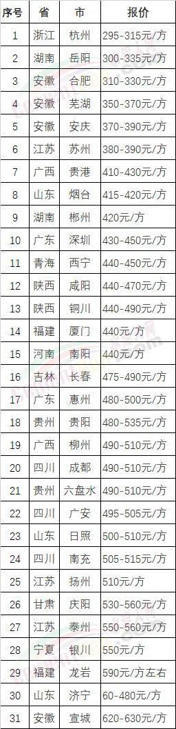 混凝土方面,水泥人网信息中心重点监控省市数据显示,2月中旬至今安徽、福建、河南、海南、江苏、浙江、四川等省部分城市C30混凝土价格出现回落,最高跌幅达10%以上。
