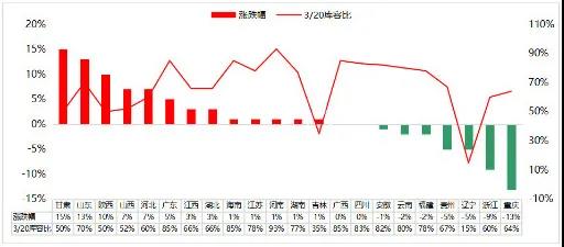 水泥行业方面,近几日,全国水泥熟料库容比持续上升,多区域水泥价格下跌。截止3月20日,全国274家水泥熟料生产企业生产线开工率71.9%。华北、西北、东北区域熟料生产线陆续结束冬季错峰开窑投产,水泥库存持续上升。同时,华南、西南、华东区域熟料生产线开工率亦有所提升 。