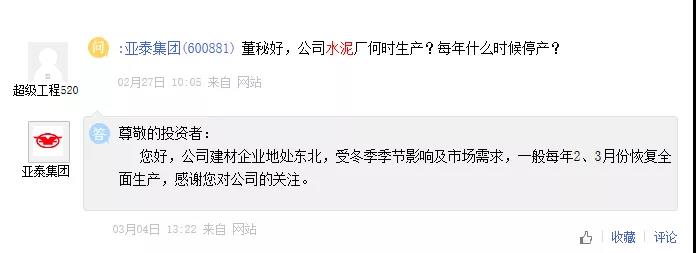 上市公司董秘回复 ,水泥一季度销售存在影响,对全年不存在重大影响
