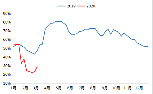 截至3月4日,百年建筑网调研全国500家混凝土搅拌站复工率72%,复产率为48%,调研当周发货量为48.6万方,虽然环比上周大幅增长66.4%,但也仅是正常水平的一成,由于水泥是混凝土生产中必不可少的原材料,而混凝土是即产即销的产品,因此其发货量将直接反应到水泥需求上,目前搅拌站整体发货量偏低,由此可以看出搅拌站对水泥大量采购还有待时日。