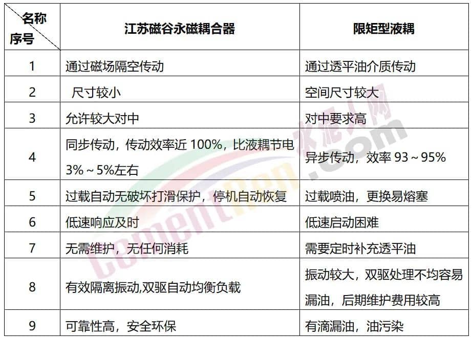 天气炎热,环境温度高时,液力耦合器故障更为突出。限矩型液耦与减速机间联轴器同轴度校调比较麻烦,耗时耗力,特别是在故障抢修时影响生产。所以目前很多水泥企业在两种耦合器之间更倾向于永磁耦合器。这两种耦合器之间的差距也是非常的大的,具体表现在以下几个方面: