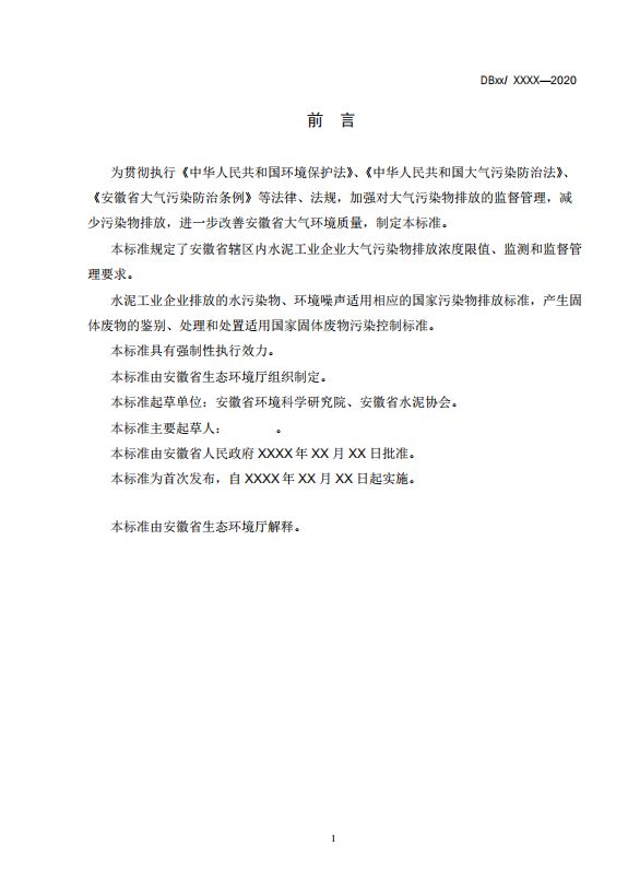 为充分发挥地方标准在降低污染物排放总量、调节行业准入和压减落后产能中的积极作用,2019年9月,安徽省生态环境厅启动《安徽省水泥工业大气污染物排放标准》(以下简称《标准》)制订工作。