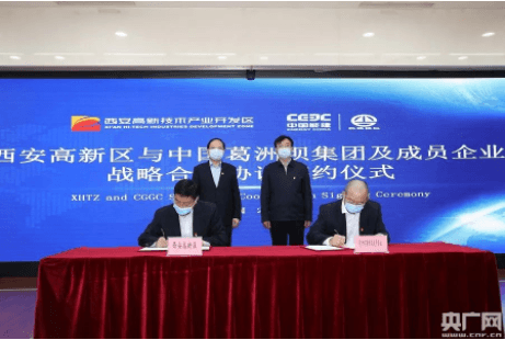 日前,陕西西安高新区与中国葛洲坝集团及成员企业战略合作框架协议签约仪式举行。市委常委、高新区党工委书记、航天基地党工委书记钟洪江,高新区党工委副书记、管委会主任齐海兵,高新区管委会副主任韩红丽、顾海文,中国葛洲坝集团股份有限公司党委书记、董事长陈晓华等出席,见证和签约投资项目。