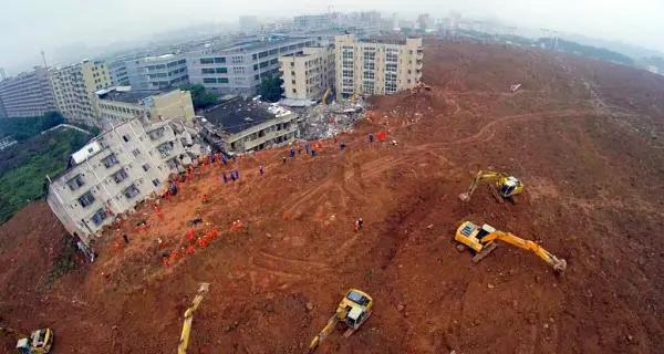 2015年12月20日11时40分,广东省深圳市光明新区凤凰社区恒泰裕工业园发生的山体滑坡。此次事故滑坡覆盖面积约38万平方米,造成33栋建筑物被掩埋或不同程度受损。