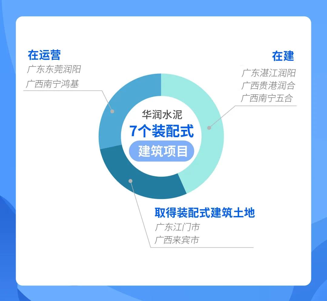 公司目前拥有7个装配式建筑项目,其中,在运营的项目包括广东东莞润阳,主要供应深圳市、珠海市保障性住房及商品住宅等项目;广西南宁鸿基项目,主要供应南宁及周边城市商品住宅等项目。在建项目分别位于广西南宁市、贵港市及广东湛江市。