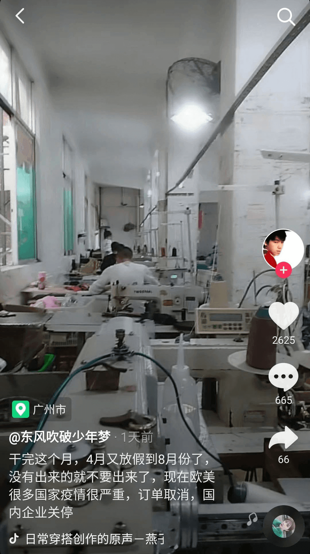 刚刚从国内延迟复产复工的第一波压力中走出来的中国外贸企业,又将迎面承接第二波压力:由于国外疫情控制导致的延迟消费、 订单搁置或者取消,不得不刚开工即按下暂停键。厂房租金和税费要付,工人工资要付,部分企业已开始裁员……中国近五千万外贸从业人员正在集体承担压力。放假至少还有回来复工的机会,但下面这些企业和员工就没这么幸运了。部分企业订单取消,物料也跟不上,索性裁员一劳永逸,厂子也几近放弃状态。某企业半个月前还在大量招工,突然就宣布噩耗,门店关闭,临时工队伍解散,厂区内有很多工人不禁潸然泪下,不知是在为自己的遭遇难过,还是在为整个家庭的未来担忧。