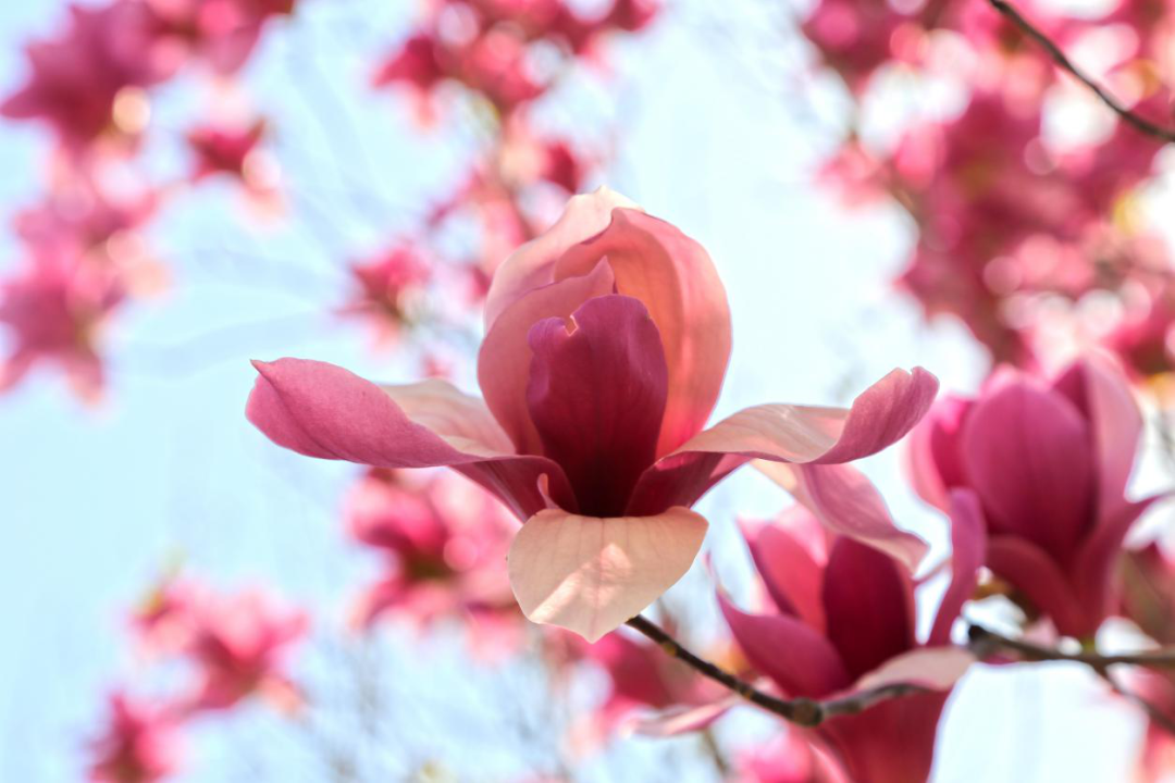 办公楼前的玉兰花已绽开,如一个个俏美人,栩栩如生地在风中摇曳,美丽清新、绿色盎然,散发着淡淡的清香,在阳光下朝气蓬勃、奋发向上。