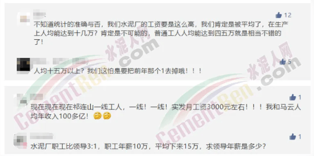 但是,仍有很多水泥企业员工给水泥人网留言称,自己根本没有涨工资,甚至还有被拖欠工资的情况,并且直呼收入被“平均化”了。