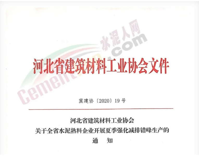日前,河北省建筑材料工业协会发布《关于全省水泥熟料企业开展夏季强化减排错峰生产的通知》,河北省水泥企业结合疫情防控和复工复产情况,冀中南区域错峰停窑10天,冀北区域错峰停窑10天。