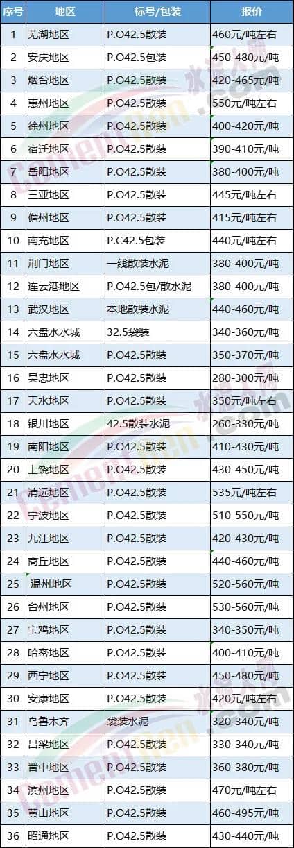重点城市:北京450-470元/吨;上海530-550元/吨;广州490-510元/吨;西安420-440元/吨。
