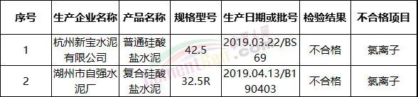 浙江省浙江省市场监管局2019年硅酸盐水泥产品监督抽查结果显示10个地区的49个批次产品中不合格2批次,不合格项目为氯离子。