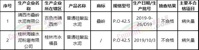 广西市场监管局官网通报2019年水泥等20种产品质量广西监督抽查情况称:2019年共抽查90家企业的166批次水泥产品,其中生产领域抽查159批次,流通领域抽查7批次。不合格产品2批次,不合格发现率为1.2%。其中生产领域抽查合格157批次,不合格产品2批次,不合格发现率为1.26%;抽查不合格项目为烧失量。