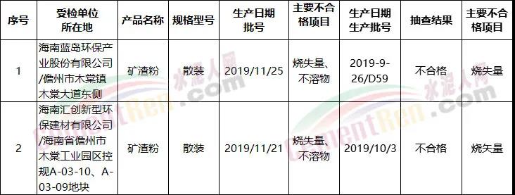 海南省市场监督管理局公布2019年水泥、粒化高炉矿渣粉产品质量省级监督抽查结果显示,共抽查涉及17家企业20个批次产品,抽检水泥、粒化高炉矿渣粉产品合格率为90%,检出2个批次产品不合格,不合格产品检出率10%。