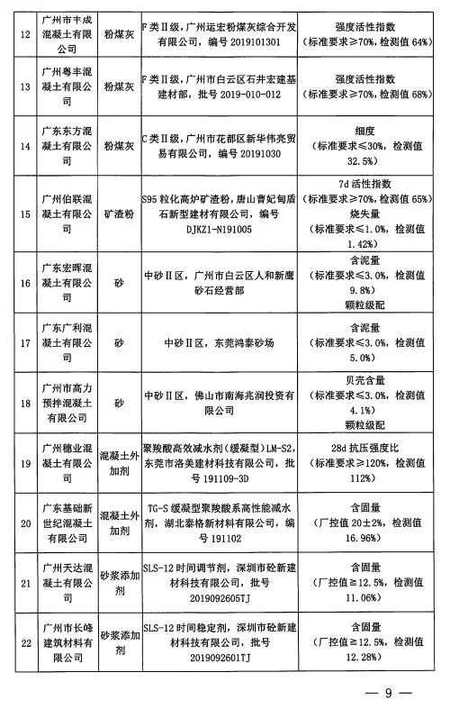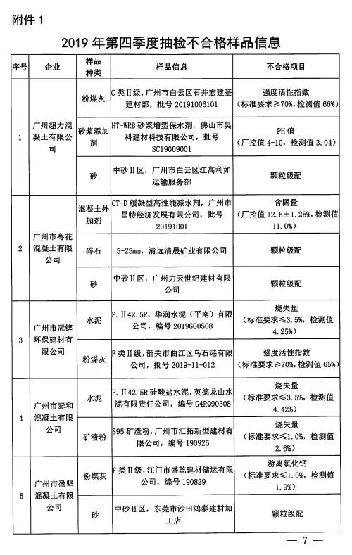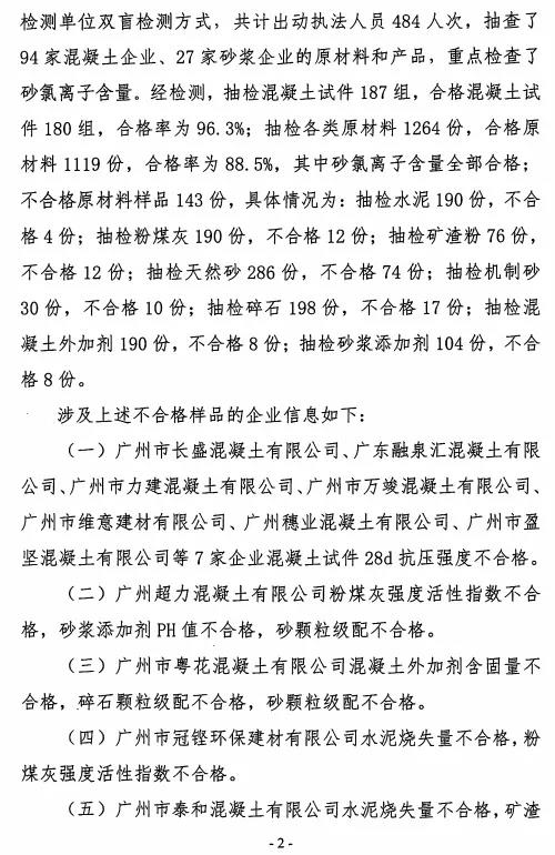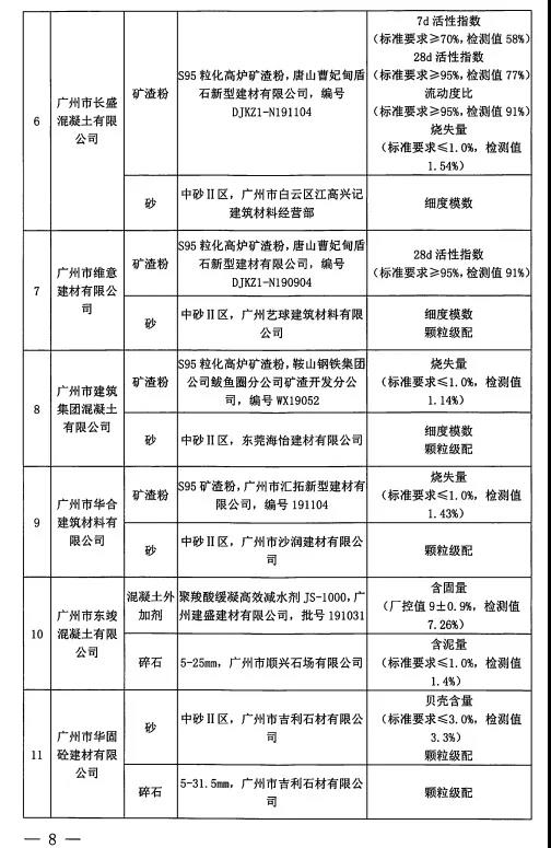 对上上述监督抽检不合格的企业列为重点检查对象,广州市散办将加大监管力度,重点核查上述企业质量管理情况,并不定期开展质量抽检 。将本次抽检的不合格原材料列入不合格原材料名录,建议全市预拌混凝土企业,预拌砂浆企业谨慎选用名录内的原材料。