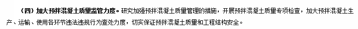 4月8日,住建部官网发布关于印发《住房和城乡建设部工程质量安全监管司2020年工作要点》的通知(司局函质〔2020〕10号) 称住房和城乡建设部工程质量安全监管司2020年工作要点包括开展预拌混凝土质量专项检查,加大预拌混凝土生产、运输、使用各环节违法违规行为查处力度,切实保证预拌混凝土质量和工程结构安全。