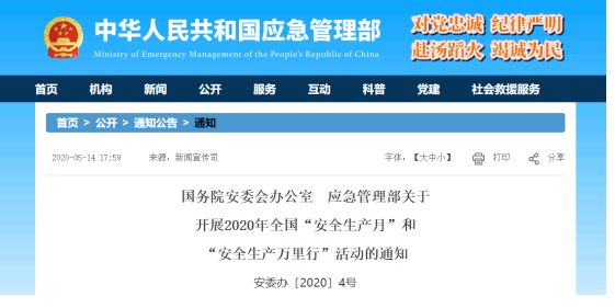 今年6月是第19个全国“安全生产月”。国务院安委会办公室和应急管理部联合下发通知,以“消除事故隐患,筑牢安全防线”为主题,部署开展全国“安全生产月”和“安全生产万里行”活动。