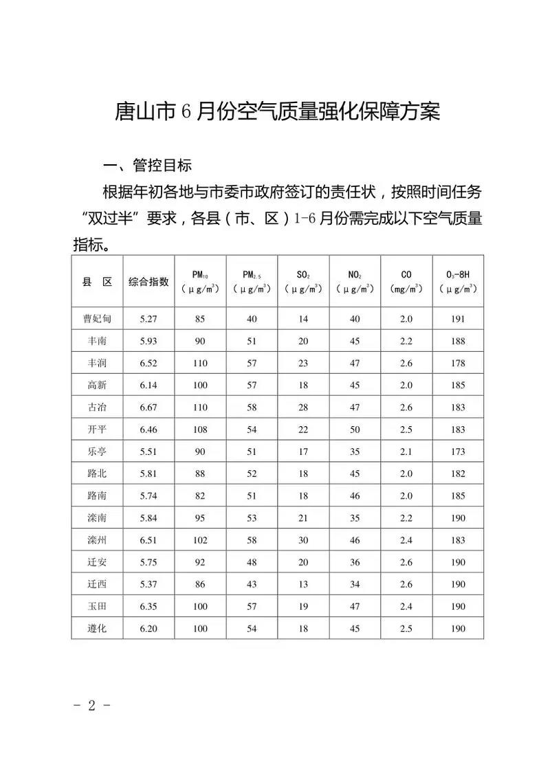 日前,河北省唐山市生态环境保护工作领导小组发布《唐山市6月份空气质量强化保障方案》称:根据年初各地与市委市政府签订的责任状,按照时间任务“双过半”要求,明确了各县(市、区)1-6月份需完成的空气质量指标。