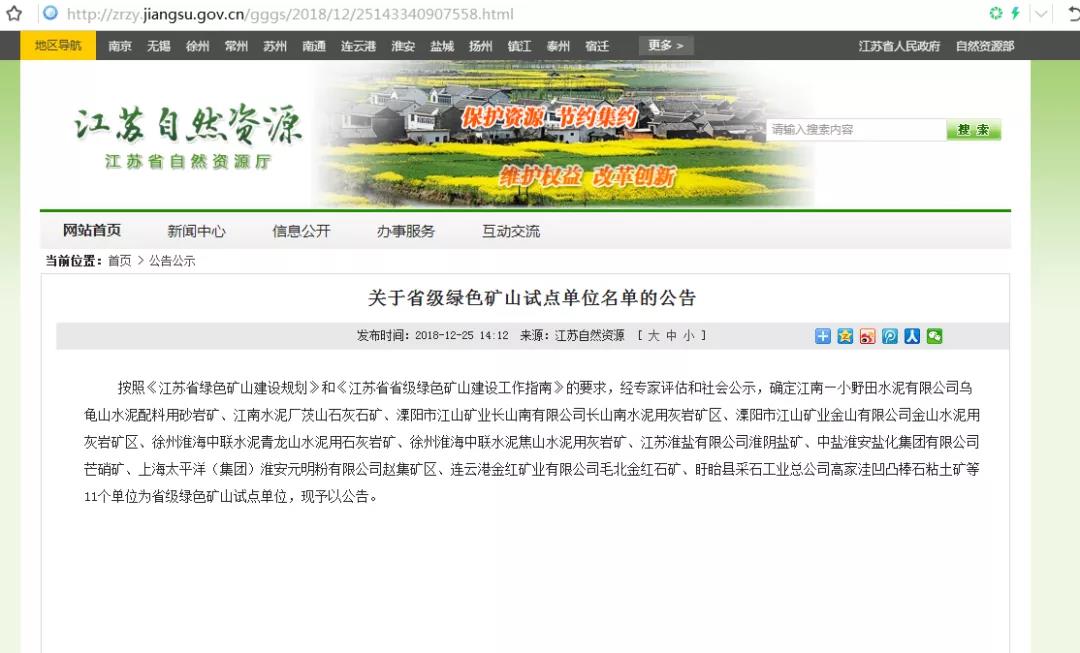 淮海中联建立健全了环保管理制度,同时配备了专职环保技术员,力求使公司的环保工作步入制度化、规范化的管理轨迹;根据自身情况进行创新,同时不遗余力地清理脏、乱、差等卫生死角,在设备上杜绝跑、冒、滴、漏现象。在煤磨配电室安装2套煤计量装置,保证生产过程中精确计算焦炭、焦末、喷煤的用量。 淮海中联对矿山至开采区道路已全部实施了硬化,硬化面积28000平方米,厂区道路及场地硬化5000平方米,石灰石大棚硬化3000平方米,破碎机口周边硬化1000平方米。 矿山场内裸露地面进行覆盖,青龙山苫盖面积达1000000平方米,焦山苫盖面积500000平方米。开采方式科学化,采矿过程清洁化,运输方式无尘化,资源利用高效化,矿山复垦生态化。 针对厂区内绿化提升工作,淮海中联也制订相关制度,并投入700余万元用于厂区绿化,先后在生产区、办公区栽种香樟、重阳木、雪松、女贞、石榴、核桃树等多种风景绿化树木3000余棵,花草3万多平方米。如今,公司厂区绿化面积已达到90000多平方米,厂区到处是绿树成排,花草成片,花香四溢……空地绿化率达到100%。 淮海中联曾获得全国工业企业500强之一、江苏省节能降耗先进企业、江苏省文明单位标兵称号,省级绿色矿山试点单位。