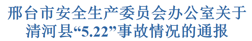 邢台市安全生产委员会办公室 于5月23日对该事故进行了通报邢台市安全生产委员会办公室关于清河县“5.22”事故情况的通报提到,清河县这起较大事故暴露出我市一些地方和单位在坚守安全生产红线、底线方面存在较大差距。