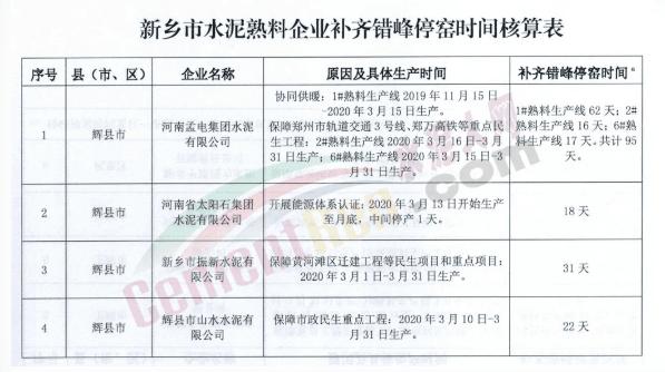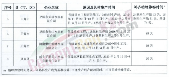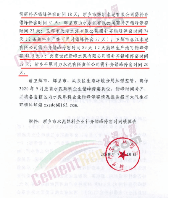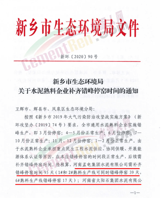 并请卫辉市、辉县市、凤泉区生态环境分局加强监管,确保2020年9月底前水泥熟料企业错峰停窑到位,错峰时间补齐。通知原文如下: