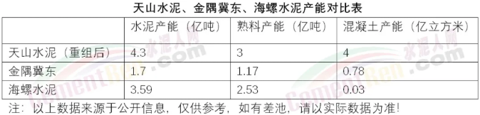 重组后的天山水泥相当于2.5个金隅冀东、1.1个海螺水泥