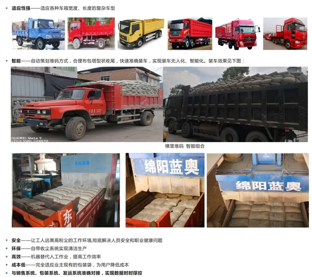 除此之外,王总表示:目前水泥企业普遍面临着劳动力短缺的问题(急需解决)、工人职业健康安全(工作环境恶劣)、企业环保、社会压力大(粉尘污染环境)和企业成本高(仅人工达2.2-3.0元/吨)等问题。目前全国水泥企业(无论是央企、大型国企还是民企)包装、装车生产线都是这种情况,有的企业装个收尘器,能够解决一部份扬尘的问题,但都没有从根本上解决。绵阳蓝奥科技的智能化装车系统可以帮助水泥企业降低人工成本,增加企业的效益,可谓是一举两得。据水泥人网了解,目前,绵阳蓝奥科技的智能化装车系统已经在中国建材、中联水泥、华润水泥、祁连山、红狮水泥、华新水泥、金隅冀东、东方希望、鱼峰集团等水泥集团广泛应用,并得到了高度认可。