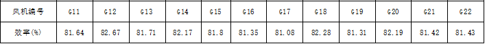 随着水泥窑线能耗指标要求的不断提升,某大型水泥集团下属重点企业决定对其两条5000t/d熟料线的篦冷机进行四代机改造,其中一线篦冷机配套我司“睿畅”系列高效篦冷机冷却风机。项目于2020年3月底安装完成,窑线正常运行后对篦冷风机进行测试,实际运行效率均在81%--83%之间,见下表。