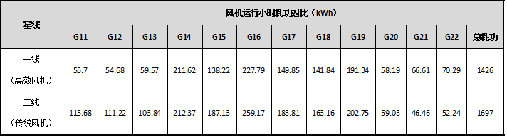 工程技术人员在窑线正常运行工况下分别对两条线篦冷风机实际运行耗功进行了测算,结果见下表: