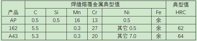 (三) 国内某钢厂在线修复LM矿渣立磨的过程中,采用明弧自保护焊丝SK AP-O, SK 162-O,SK A43-O,一周左右连续作业的方法在线修复了磨辊和磨盘衬板以及挡料圈,取得了理想的效果!后来该材料系列又在其它几个集团公司做了使用,均满足了客户要求。焊丝成分参考/