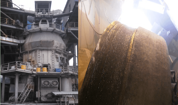 (四) 修复过程及检测:在保证有效的前处理情况下,必须进行堆焊过程控制,其实也是通过工艺参数的细化,来控制热输入/线能量来达到理想的状态。参数控制包括:焊接电流,电压,堆焊线速度,层间温度等。目测主要是观察电弧的稳定性,飞溅的大小,焊缝成型,裂纹形式等;过程控制包括相对应的样板测试,尺寸随检等。随后,在使用过程中,为了更有效的提高使用寿命,同时提请注意入料粒度,料层厚度等,这样在保证粉磨质量的同时提高产量。