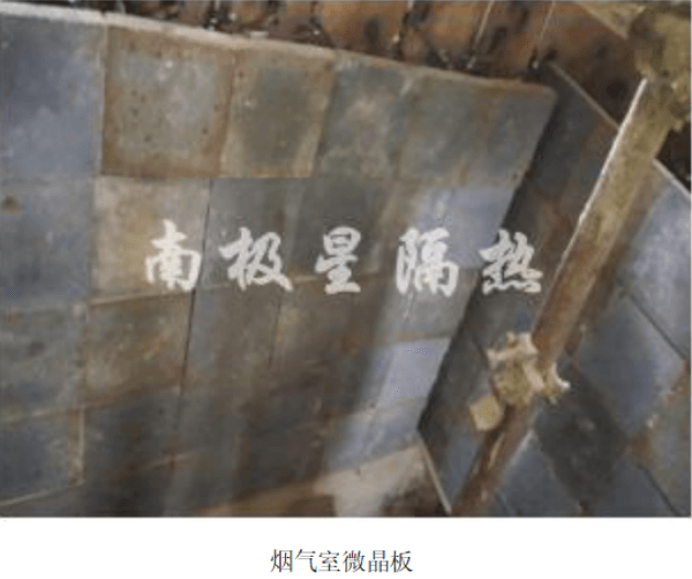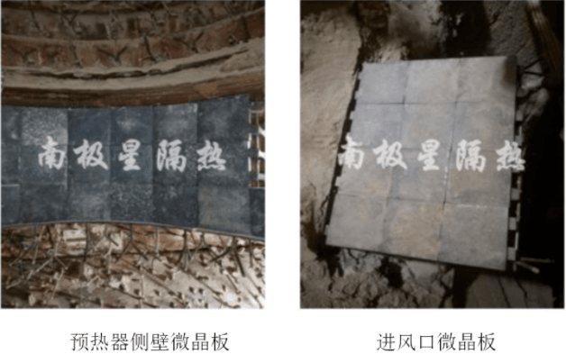 ZAS1550型微晶板在容易结皮的预热器、分解炉三次风管的迎风面、缩口、锥体、烟气室和下料管上大量应用,为水泥企业解决结皮堵塞问题创造了条件。同时,在冷面配套使用南极星NJS950型纳米隔热板,大幅度地降低了设备的外壳温度,为烧成系统节约能耗提供了保证。