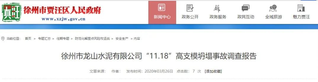 事故是发生在 去年11月18日16时50分左右,江苏展通建设有限公司承建的徐州市龙山水泥有限公司水泥粉磨站扩建项目二期工程,在浇筑+31.5米标高层梁、板混凝土时,发生中心区楼面模板支撑系统坍塌事故,造成1人死亡,5人受伤,直接经济损失约500万元人民币。