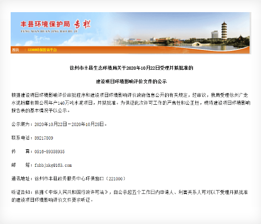 附件:徐州广龙水泥粉磨有限公司年产140万吨水泥项目