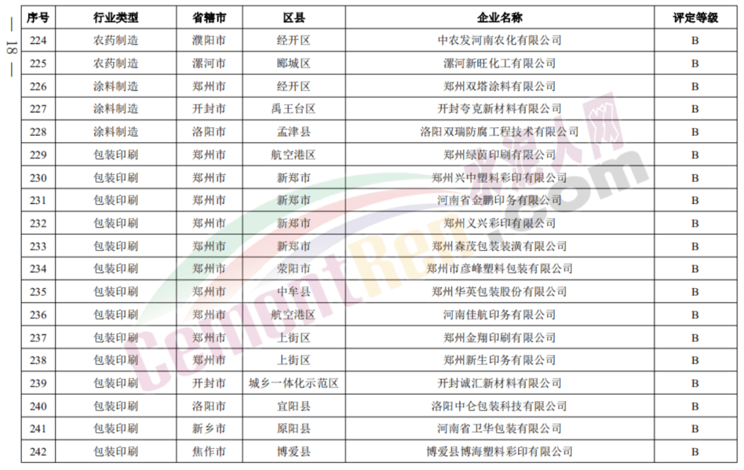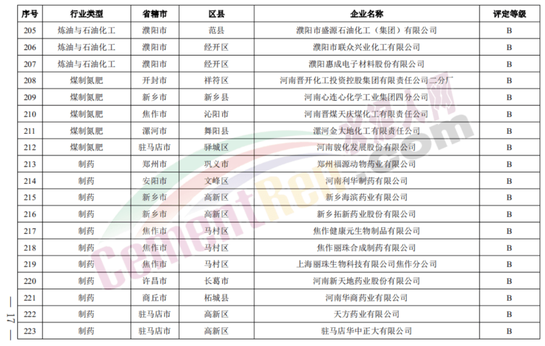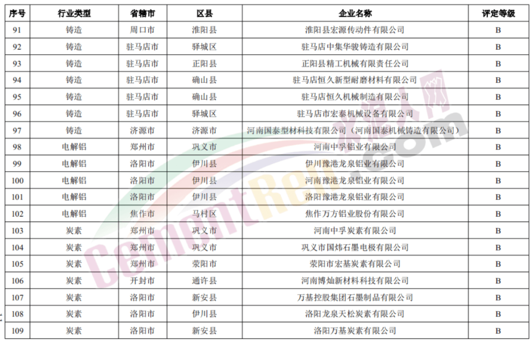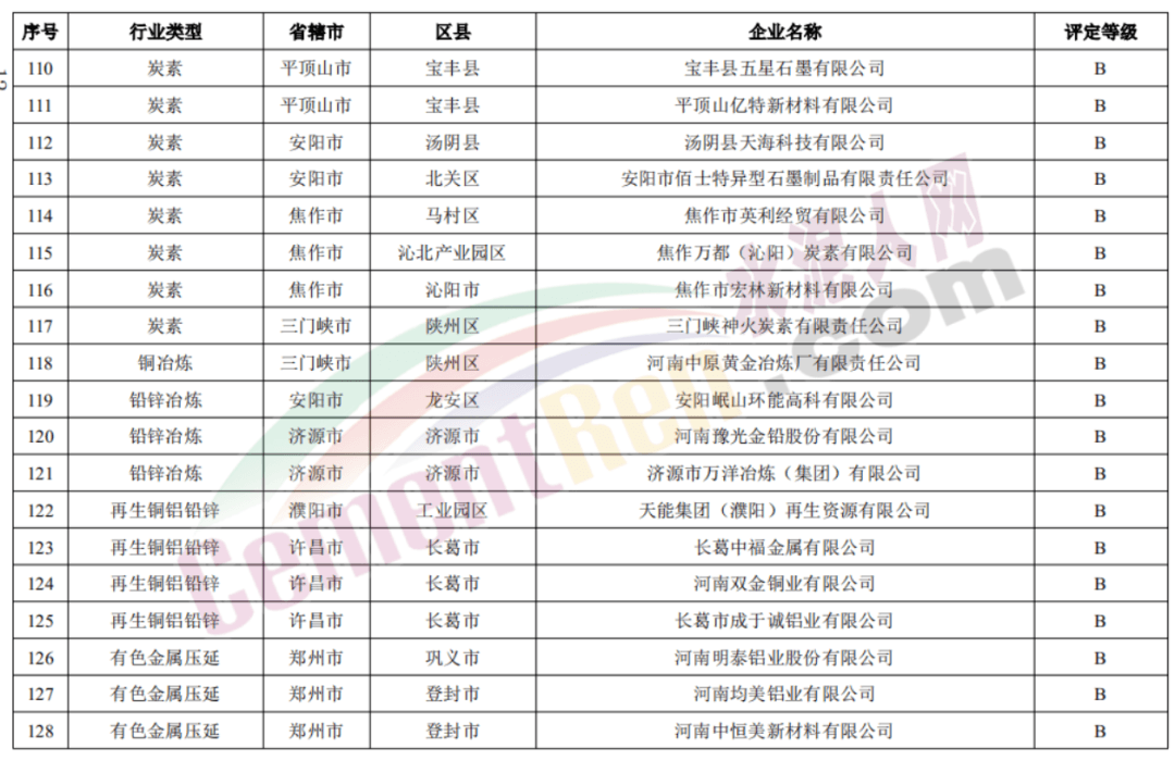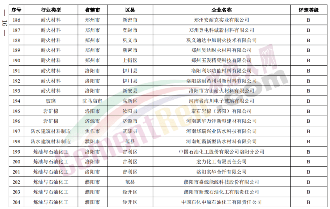 包括登封中联、新安中联、洛阳中联、济源中联、邓州中联、淅川中联、南阳中联、安阳中联、安阳湖波、大地水泥等20家企业获评B级。