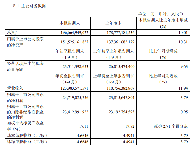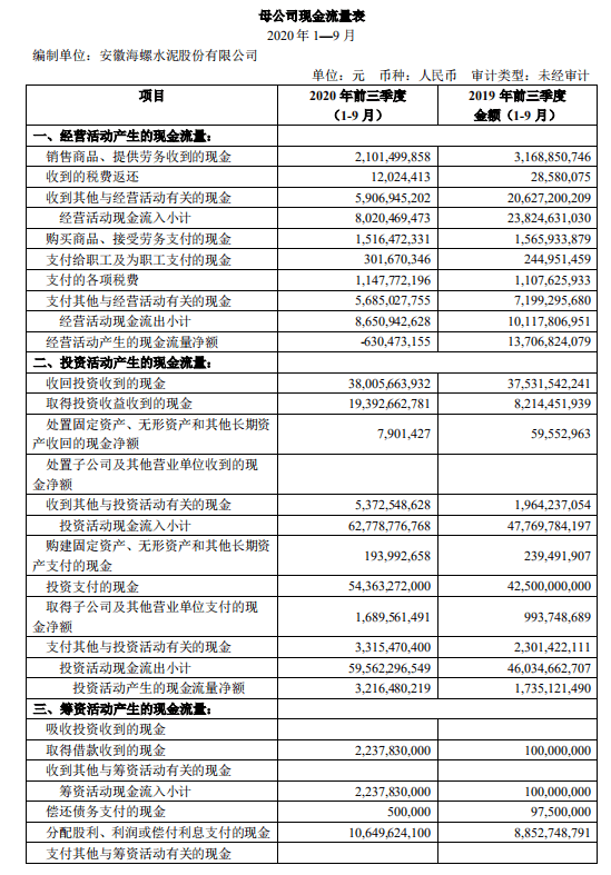 海螺水泥10月27日晚间发布三季度业绩公告称,2020年前三季度营收约1239.84亿元,同比增长11.94%;净利润约247.19亿元,同比增长3.79%;基本每股收益约4.66元,同比增长3.79%。