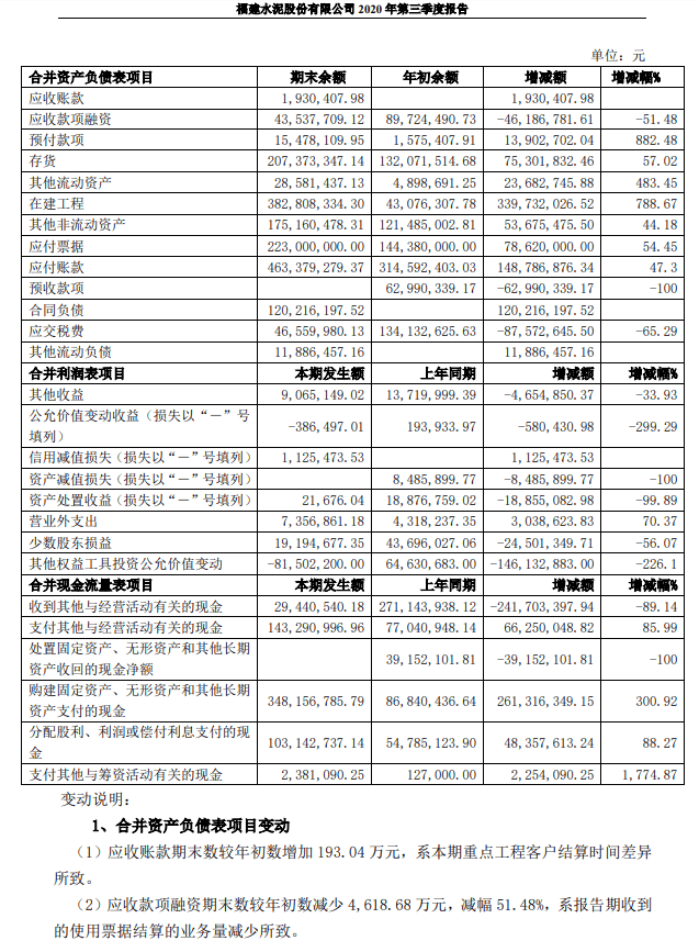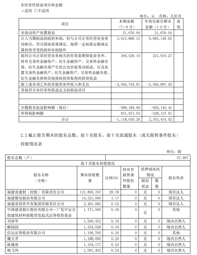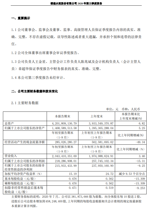 10月26日晚间,福建水泥披露半年报显示,公司前三季度实现营收20.43亿元,同比增长3.46%;实现净利2.18亿元,同比减少15.31%。