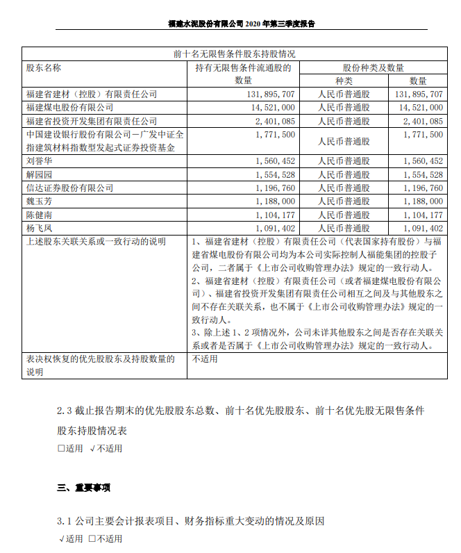 全国水泥价格指数为150.55点,年内首次向上突破150点,10月累计已经上涨超过2.8%。其中塔牌集团公告称,受益于整体水泥综合售价高于上年同期,前三季度净利同比增31%。对于第三季度净利润“折戟”与对第四季度的业绩预期,福建水泥有关人士较为“谨慎”,表示按正常来说,进入旺季应该涨价,但能否上涨“很难说”。如此“谨慎”或许与福建省水泥企业的格局有关。水泥由于附加价值较低、运费成本较大,具有明显的区域性特征。而国内水泥行业经过“洗牌”普遍集中度较高,部分省区前三大水泥企业产能集中度超过70%,而福建前三大水泥企业产能集中度为36.95%,排名全国倒数第二。产能集中度较低容易“互打价格战”。数据则显示,2020年上半年,福建水泥、塔牌集团、冀东水泥、海螺水泥的销售毛利率分别为26.60%、43.82%、35.67%、34.93%。福建水泥的销售毛利率明显低于同行。记者注意到,三季度福建水泥前十大股东“大进大出”,除了原有“老股东”,7个席位均为新进,其中中证全指建筑材料指数型基金新进177万股、信达证券新进120万股。