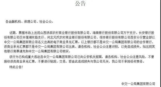 在上述声明中,中铁武汉表示,自今年1月20日起,除建设银行武汉光谷自贸区分行外,该司已全面暂停其他金融机构开具商业承兑汇票,并提醒凡是出票日期在2020年1月20日(含当日)之后,在建设银行武汉光谷自贸区分行以外的金融机构开具的商业承兑汇票,均为冒名或伪造票据。就在去年,多家央企相继“中招”假商票。2019年年底,中交一公局集团有限公司、中国建筑第八工程局有限公司、中国建筑第六工程局有限公司、中冶天工集团有限公司和中国建筑第五工程局有限公司相继发布公告称,有不法分子涉嫌伪造企业资料,冒用公司名义开立银行账户,并通过虚假银行账户冒用公司名义签发和承兑电子商业汇票。