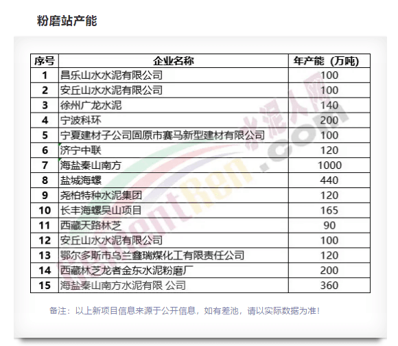 近日,全国有15个新建粉磨站落地,项目投建方包括中联、西南、华新、尧柏等多家集团企业,合计产能共3355万吨/年,详情如下表: