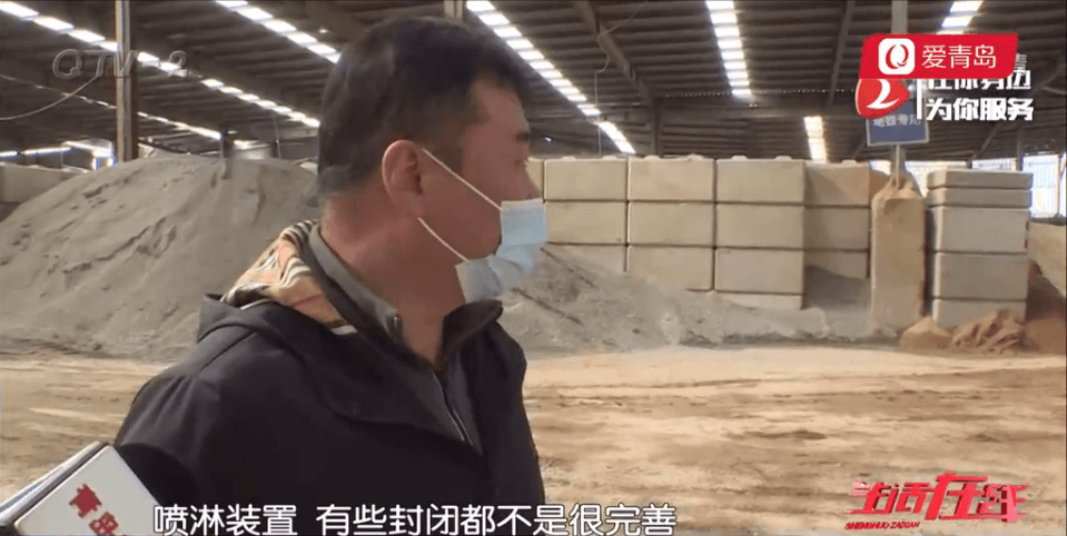 执法人员表示,因为企业物料车间存放的都是砂石类原料,如果没有严格按照环评要求执行,就容易产生粉尘污染,因此这也是执法检查的重点,在2019年11月份,他们就曾因物料棚出现破损,未完全封闭问题,对企业提出过整改。但现场行动员看到,生产车间顶棚也没有完全封闭。