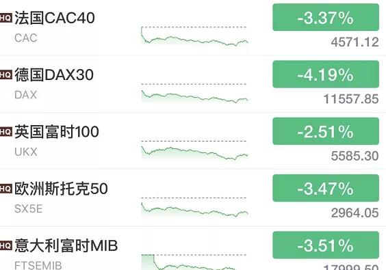 受疫情等因素的影响,欧美股市腥风血雨,一片杀跌!欧洲股市被锤完之后,美股继续锤!