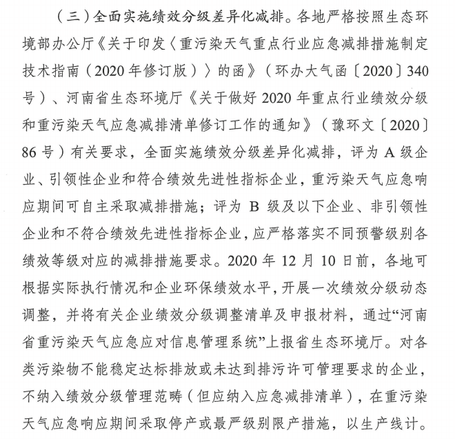 3、加快水泥行业超低排放改造,2020年年底前,全省74家水泥熟料企业及粉磨站全部完成有组织、无组织超低排放改造,加快推进大宗物料产品清洁运输改造。各地要增强服务意识,协调组织相关资源,帮助水泥企业因厂制宜选择成熟适用的环保改造技术路线,为企业超低排放改造尤其是清洁运输等提供有利条件。各地要指导完成超低排放改造的水泥企业,按照《河南省水泥企业超低排放评估监测技术指南》,2020年11月20日前自行或委托有资质的监测机构和有能力的技术机构,开展评估监测工作。水泥企业经评估确认达到超低排放要求的,报市级生态环境管理部门备案。