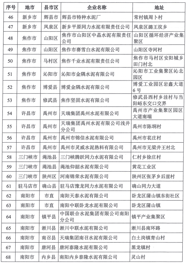 日前,河南省相关部门印发了《河南省2020-2021年秋冬季大气污染综合治理攻坚行动方案》提到,将要淘汰4条生产线及9座水泥粉磨站,涉及水泥企业12家。并要求2020年年底前,全省74家水泥熟料企业及粉磨站全部完成有组织、无组织超低排放改造。