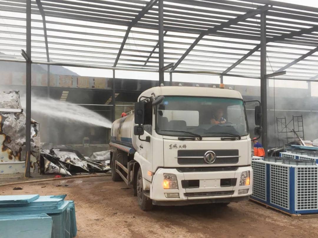 当天下午,该公司一名巡检工正如往常一样进行巡检工作,忽然发现距离该公司3公里外的一处厂房冒出大火。周边橙子树、农作物、农户房屋相对密集,火势蔓延迅速,浓烟滚滚,附近居民纷纷奔向失火处救火。该员工立刻将此情况上报,该公司负责人立即派出行管部和职业健康与安全部带领小车班开洒水车赶往火灾现场一同参与救火,帮助在消防人员到达之前控制火情。