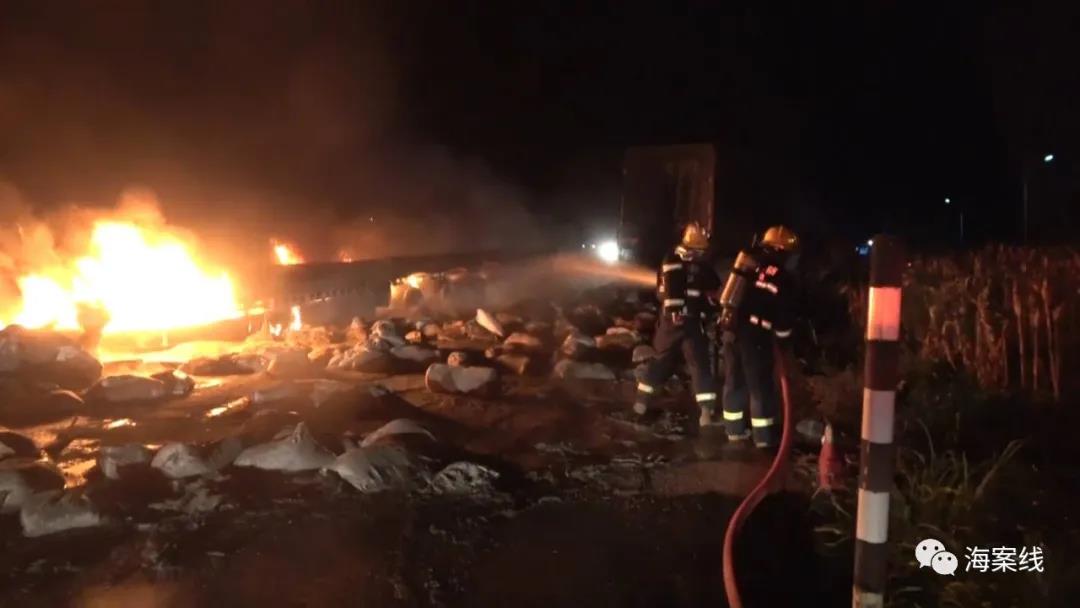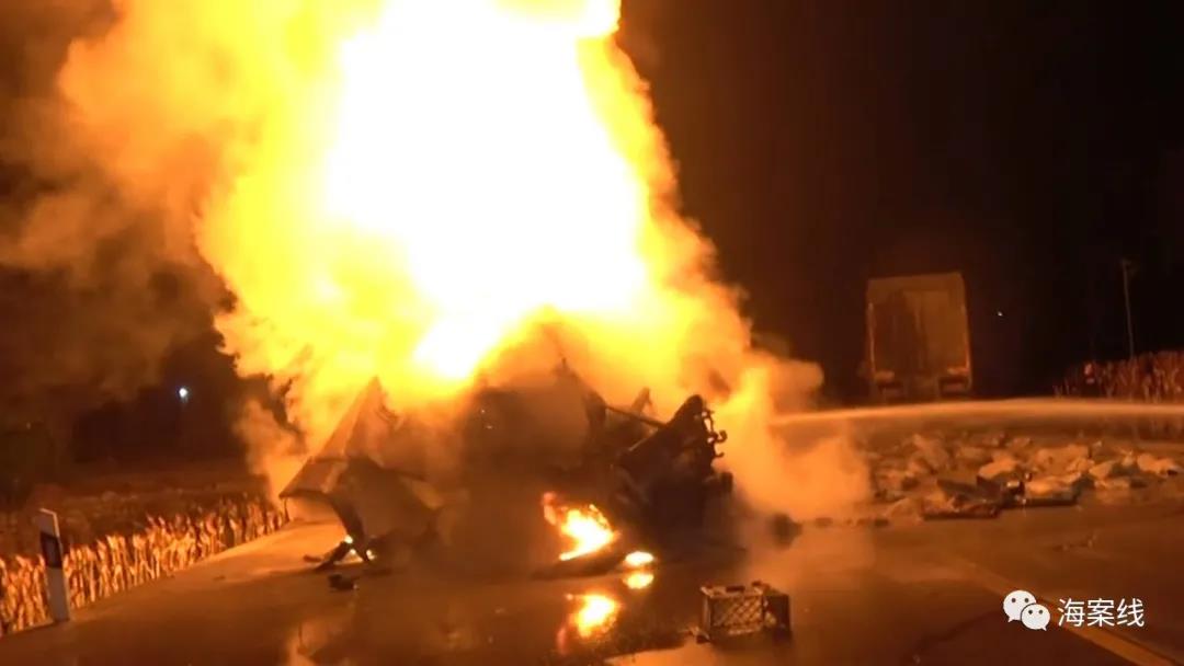 消防员立即兵分两路开展救援工作,一组人利用消防车出水扑灭水泥挂车的明火,抢救被困人员;另一组人利用破拆器材对化肥货车的车头进行破拆,抢救被困驾驶员。经过紧急扑救,现场火势很快得到控制。3点30分,明火被扑灭,5点10分,货车内被困驾驶员救出,经现场医务人员确认已无生命迹象,而水泥挂车的两名被困人员因火势燃烧猛烈,也不幸身亡。此外,货车和挂车上各有一人在本次事故中受伤。