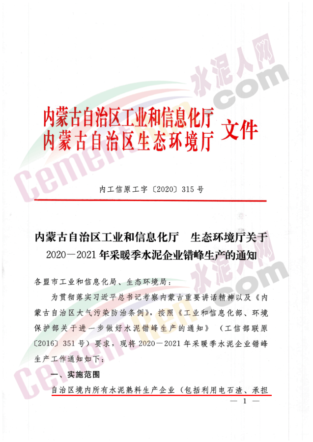 承担居民供暖及协同处置生活垃圾、污泥、危险废物等保民生任务的水泥熟料企业,按照工业和信息化部《关于水泥行业错峰生产规则认定的复函》(工原函[2018]145号)执行,根据实际承担任务量核定最大允许生产负荷。