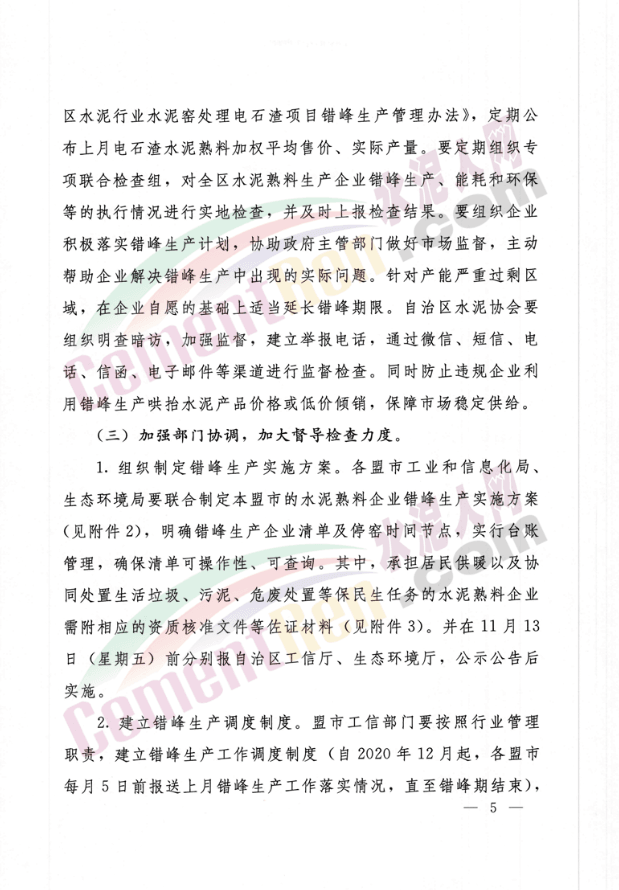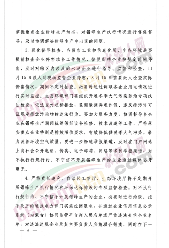内蒙古自治区水泥协会要组织明察暗访,加强监督,建立举报电话,通过微信、短信、电话、信函、电子邮件等渠道进行监督检查。同时防止违规企业利用错峰生产哄抬水泥产品价格或低价倾销,保障市场稳定供给。